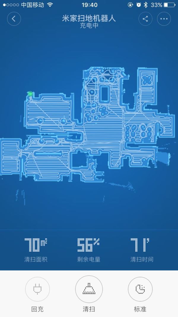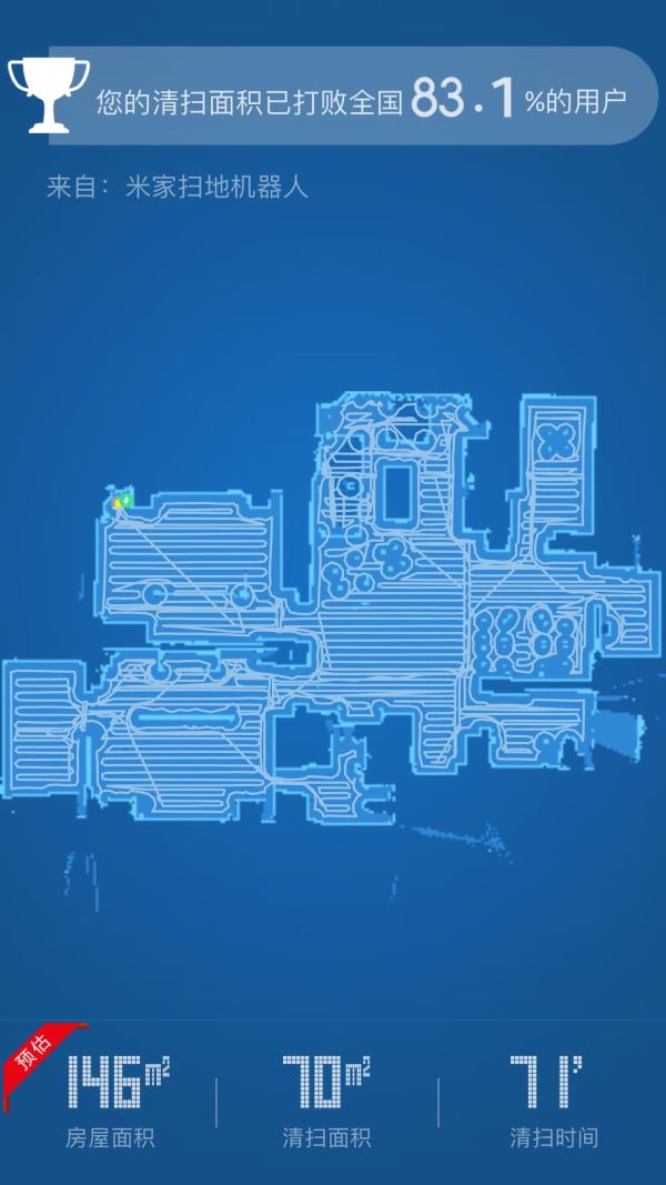 终于入手了。蛮聪明的、不会漏扫,就是超过1.5的坎下去就上不来了。 我家110平方,清扫面积70,因为家里美式装修,床和沙发都有高度,所以基本除了落地衣柜,其它下面都能进。家居摆放也很规整,所以清扫率很高。 长毛地毯和厚的羊毛地毯上是能上去,但是很费劲,地毯上运行特别慢,也特别费电。 总的来说是很值了。终于入手了