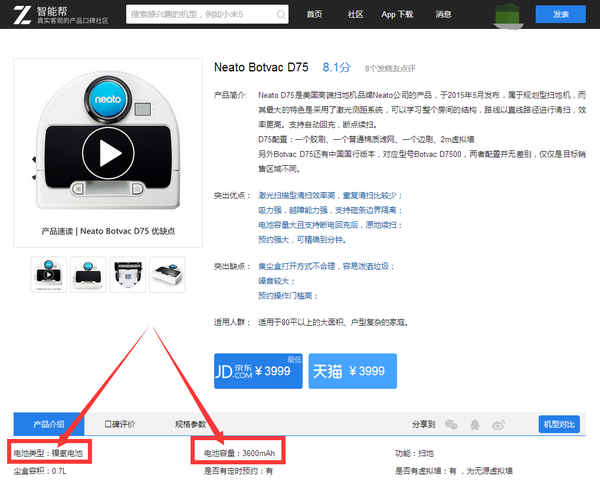 就以Neato D75为例,算是国外靠谱规划型最低价了,电池居然还是镍氢的(记忆效应、寿命短、放段时间不用会跑电),小米的呢?5200mAh,还是锂电池。业界良心!