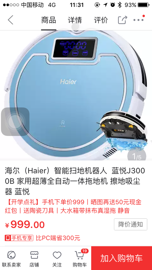啥也不说了,昨晚把买了不到半年的海尔给砸了。这货纯粹是个渣渣,扫地四处乱撞,跟没头苍蝇一样,不但扫不干净,还净添堵。另外电池是镍氢的,不能随用随充。小米扫地机已经在快递小哥的手上啦~~~~~9月8号更新小米就是牛啊,把无人驾驶汽车的技术运用到扫地机器人上面来了,不漏扫不重复,确实良心。以前用烂海尔两个小时耗尽电池扫不干净两室一厅,小米20多分钟搞定,电还剩84%,服了!
