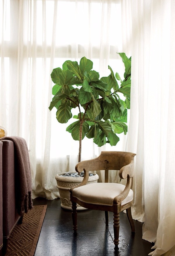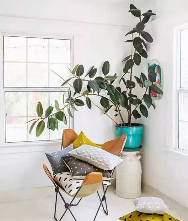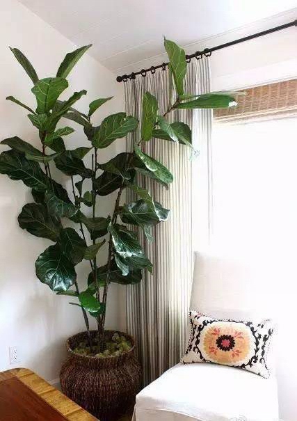 绿意欲滴的琴叶榕,提亮了周边素雅的色彩。