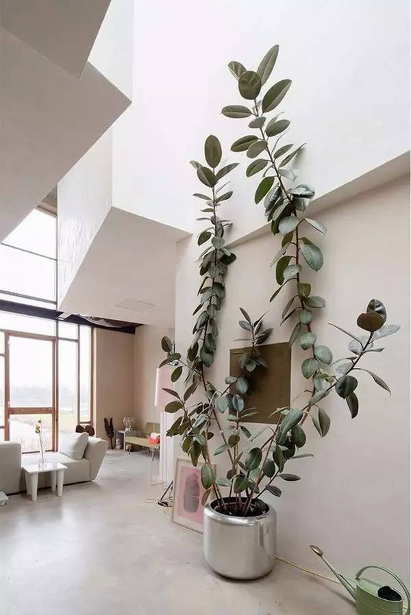 展翅欲飞的橡皮树,和空间不规则的线条相得益彰。