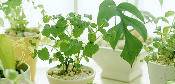 薄荷(前),龟背竹(后)