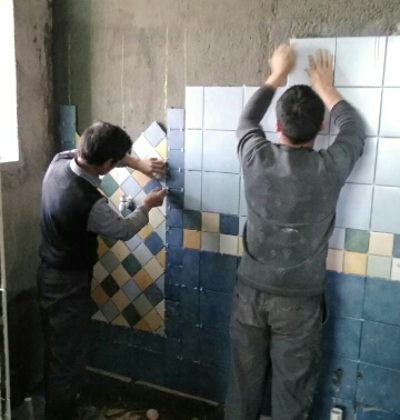 今天起床把衣服分好类,老公带着宝贝在家洗衣服,我去上面陪着师傅造型,菱形真的是挺繁琐的,加上砖小又要注意颜色的规律又要对齐斜线平整度特别耗时间,今天一天的成果,呵呵,不过应该越来越熟悉会越来越快吧,一边贴一边聊天,一天愉快的就过去了。隔壁单元的一位姐姐听别的邻居说我家新颖好奇过来瞧瞧,还热情的带我去她家看她的简欧风,说她很喜欢我家的风格特别期待,加了微信以后多交流。又多了一位新邻居,我们这个小区大多是同龄人,都有小不点孩子,所以很容易就聊到一块了,看朋友圈是一位单纯乐观的女孩。回到家老公做好晚饭给宝贝蒸了蛋蛋,今天老公的表现真是让人感觉到幸福感。