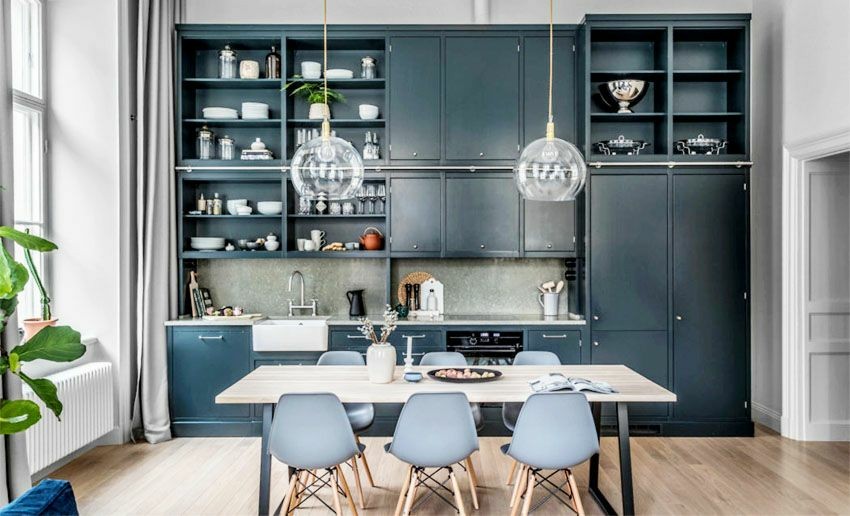 蓝色的橱柜很漂亮,很有复古的味道,有韵味。