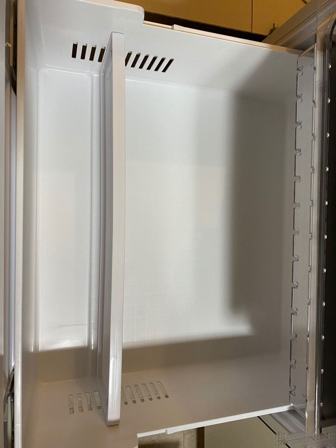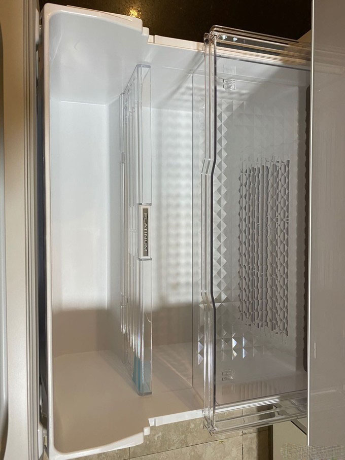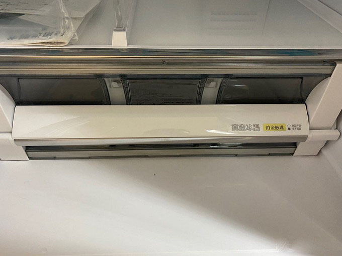 第四部分就是蔬果室,分两层,最外面是放置高瓶饮料。和真空层一样采用了铂金触媒技术,还有润泽保鲜技术。