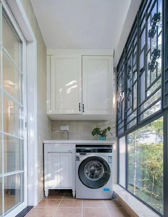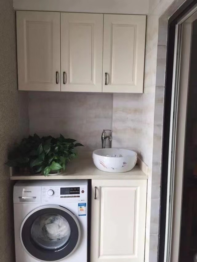 阳台是连接室内必不可少的地方,一般有阳台的房子都会选择把洗衣机放到阳台上,但是因为阳台每天接受阳光的普照,并且还会遭受到恶劣天气的严重影响,我们要是直接把洗衣机放在上面可能会影响洗衣机的使用时间,这时候选择安装一个比较大的洗衣机柜是最合适不过的了,既能够放东西还可以对洗衣机起到非常好的保护作用。
