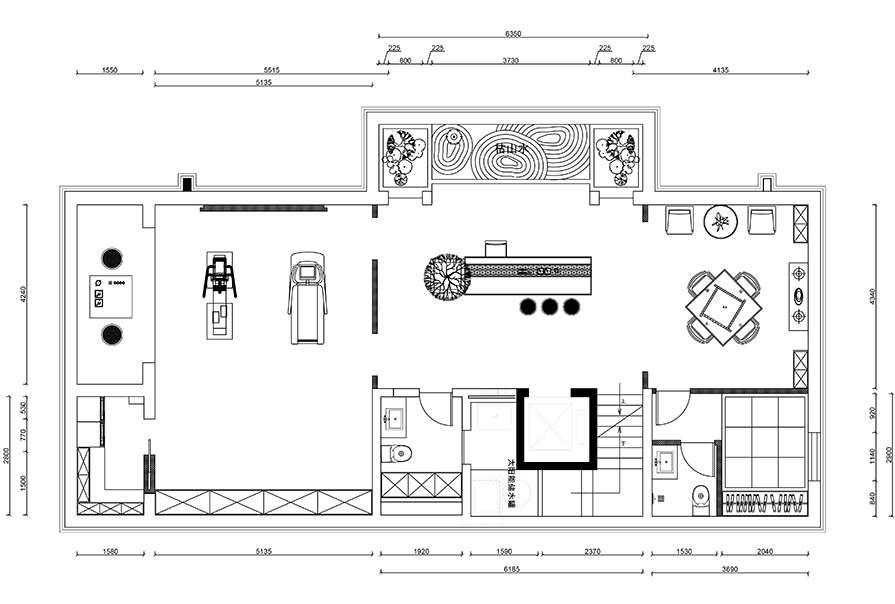 小区名称:北京平谷首城汇景别墅面积:427㎡设计说明:本案是一家三代人共同居住加上地下一层一共四层的别墅,平时老人喜欢品茶和阅读,年轻夫妻喜欢健身,所以设计风格中融入了传统的中式元素,如盆景、茶室等,材质上以有质感的灰色为主,搭配淡雅色布艺,金属材质的点缀,让整体空间增加奢华雅致感,如山水画一般雅致。【首城汇景别墅平面图】