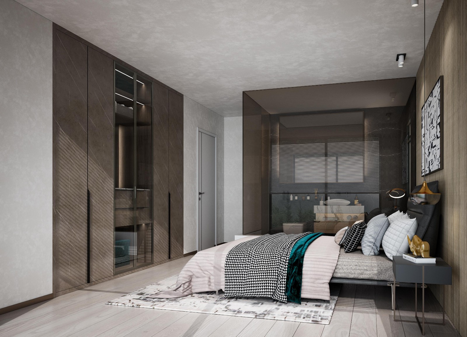 规划人性化格局,小空间也能满足大需求过去的老房子由于过时的设计理念,大多空间布局设计有不合理之处,所以改造翻新尤其需要在功能和细节上多花心思,才能让空间利用率更高。米兰纳范Nice系列在主卧空间设计上,以舒适为原则的基础上,寸空间物尽其用,在隐藏和曝光之间,演绎品质。原本简单的一床、一柜的卧室设计,在米兰纳范Nice系列的精心打造后,原本收纳能力有限的衣柜,升级为掩门收纳、展示区、折叠区、梳妆区于一身的综合一体柜。在严谨的外表有着丰富的内心,从掩门区域为男女主人的衣物存放设置合理分区,满足挂叠存储,到展示区玻璃掩门减弱视觉阻碍,增加展示功能,精美饰品及包包,为用户打造精致日常;再到梳妆区,化妆台搭配仪容镜,为女主人打造精致生活日常。米兰纳范Nice系列用自带高颜值的视觉享受,让家居空间变得更加便捷舒适。