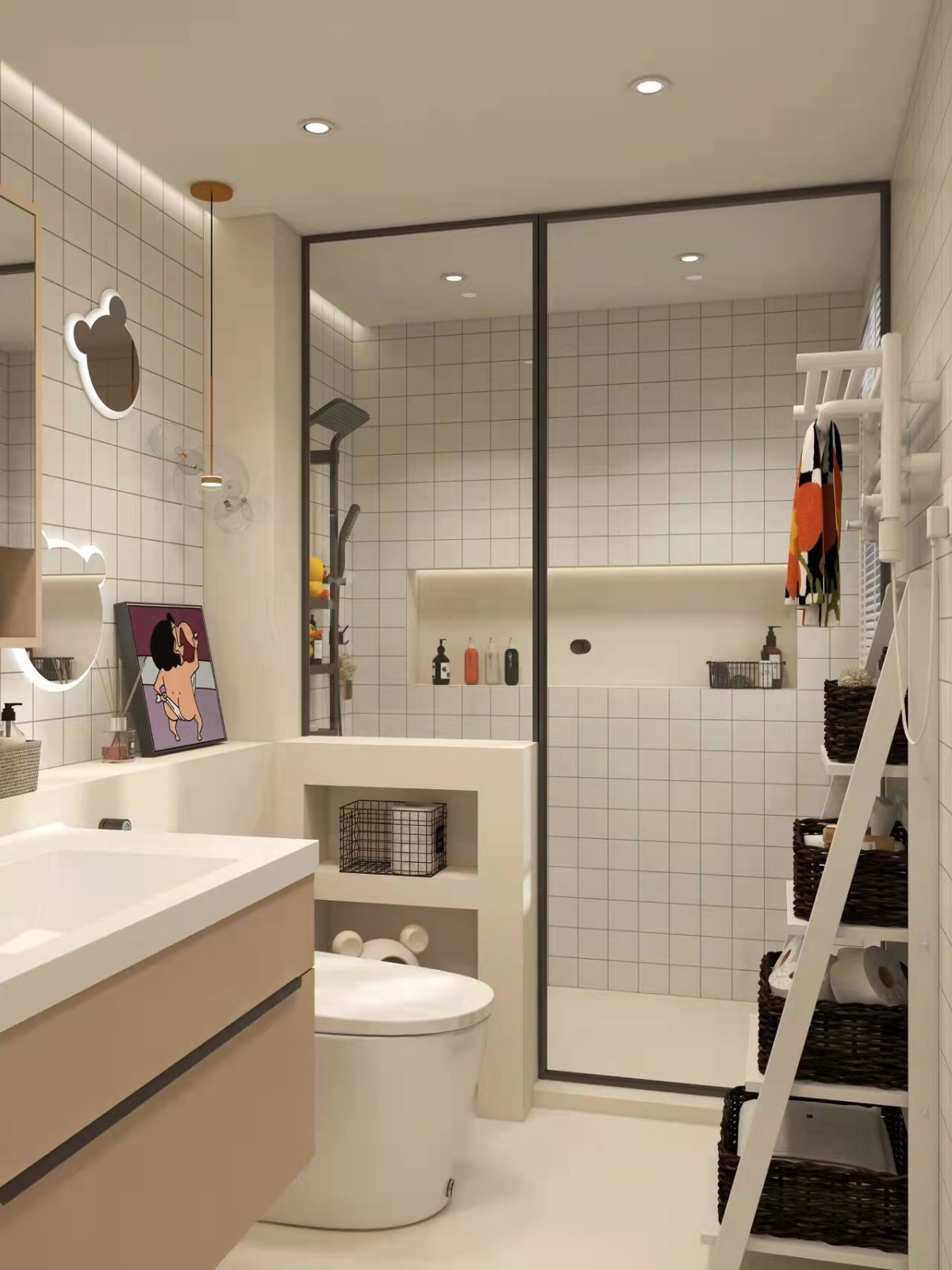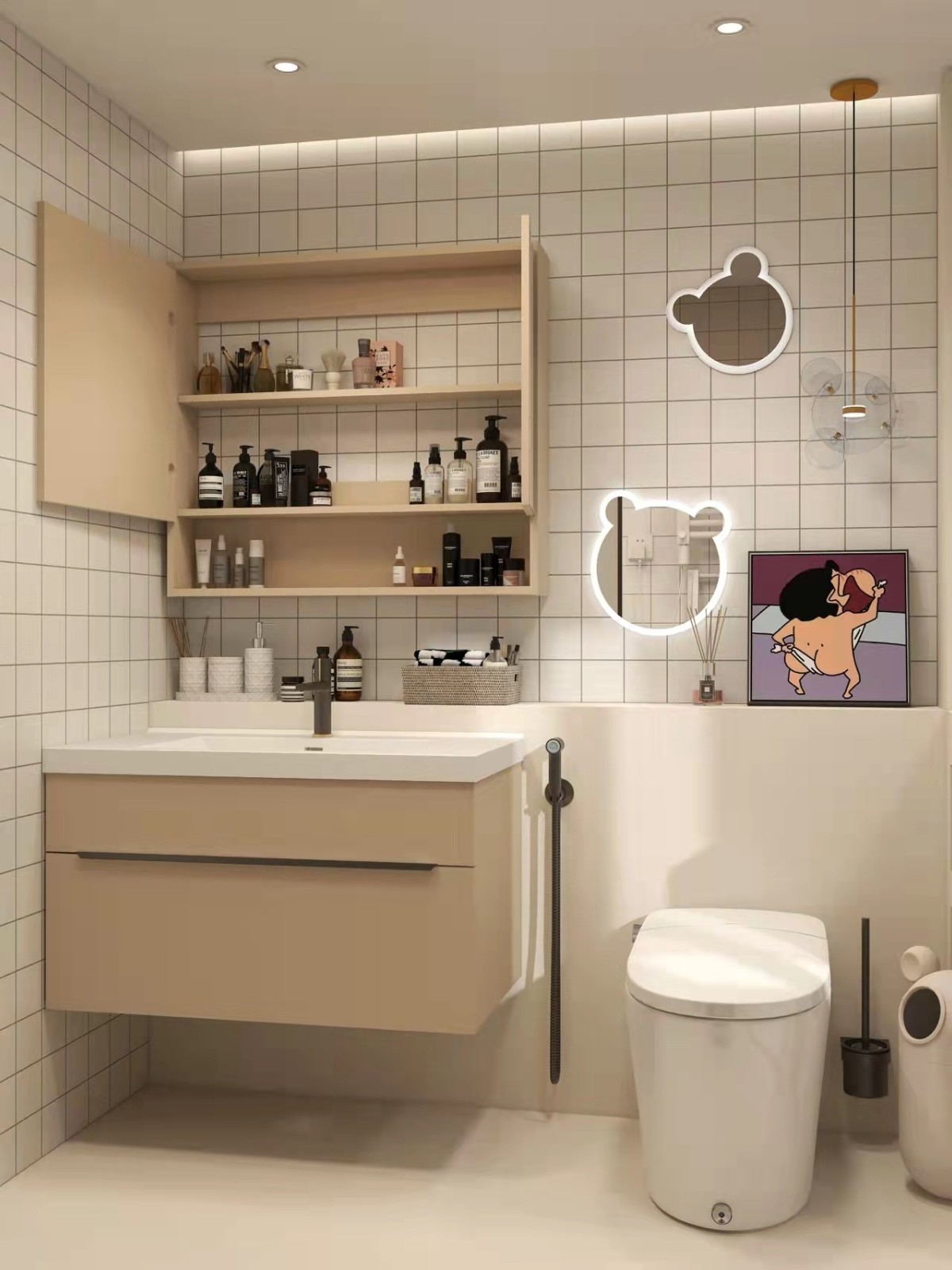 马桶可不是买来就能装的,一定要了解这2个尺寸:马桶体积、地排坑距。智能马桶的体积会比普通马桶体积大,长度在685mm以内的算小的。打算安马桶的卫生间面积至少大于1.5㎡,不然会令人感到拥挤不适。地排坑距:地面排污口中心到瓷砖墙的垂直距离,不同品牌的马桶坑距规格有所差异,即使都叫305,对应的实际距离也有偏差,所以买马桶前要问清楚坑距。无聊的知识又增加了~(今日设计:多收纳卫生间里的智能马桶)