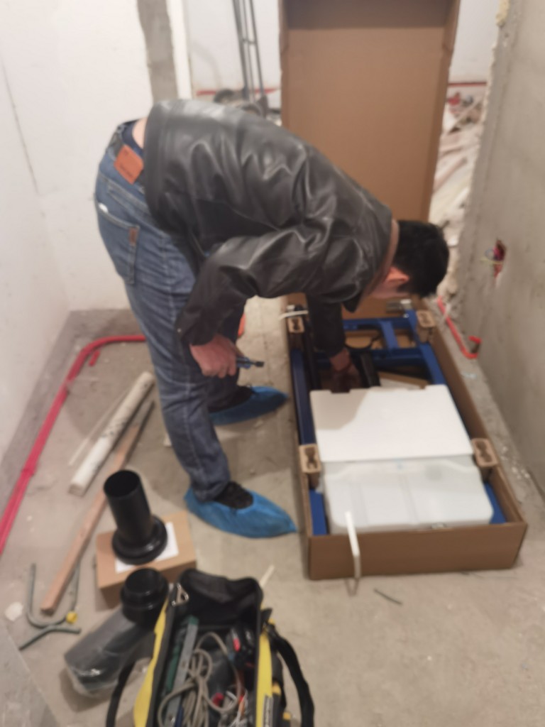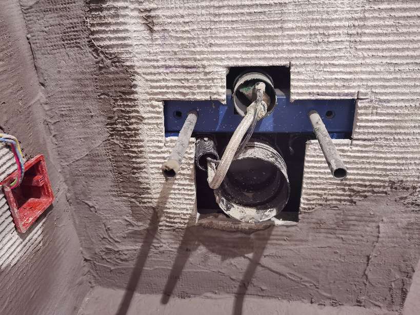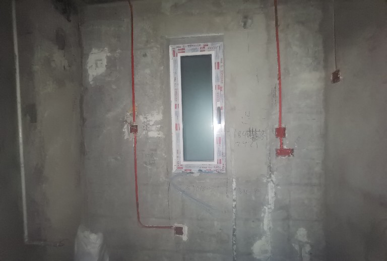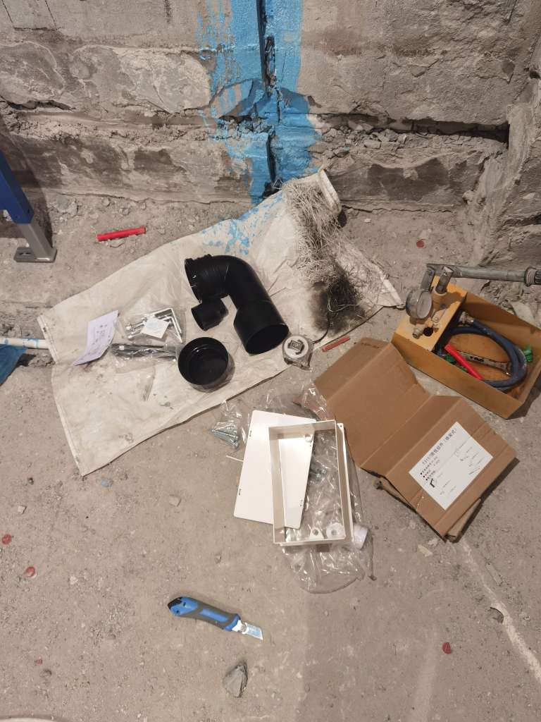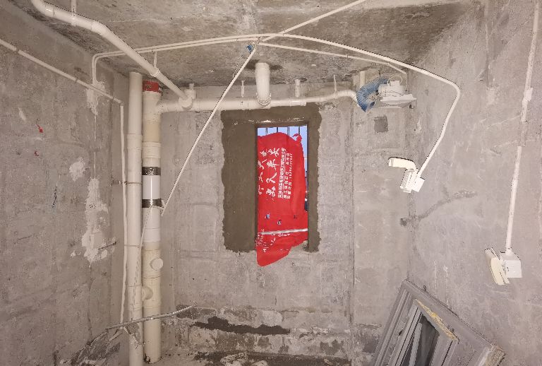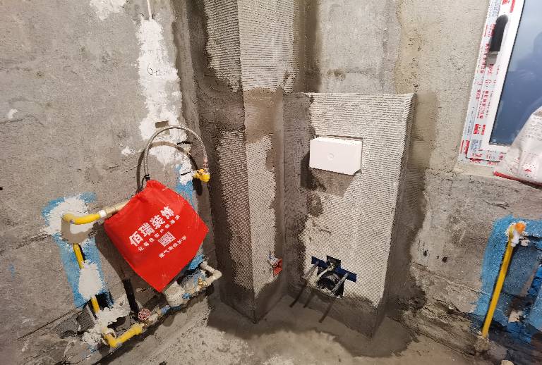 2021.12.25,卫生间下水管和壁挂水箱用水泥板包裹。