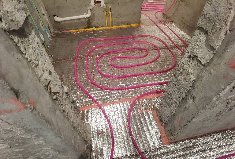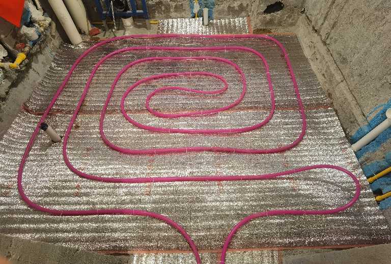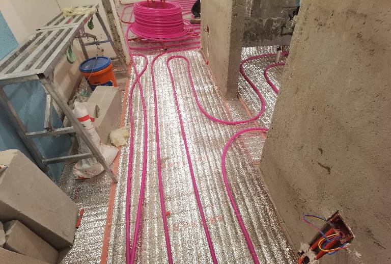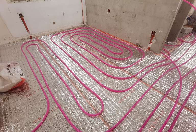 2021.12.17,地采暖铺设水泥面。