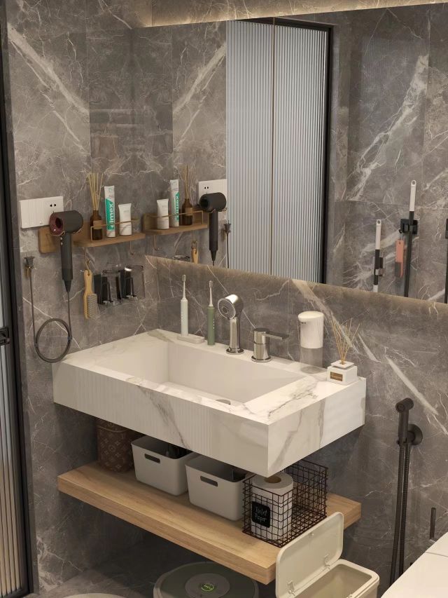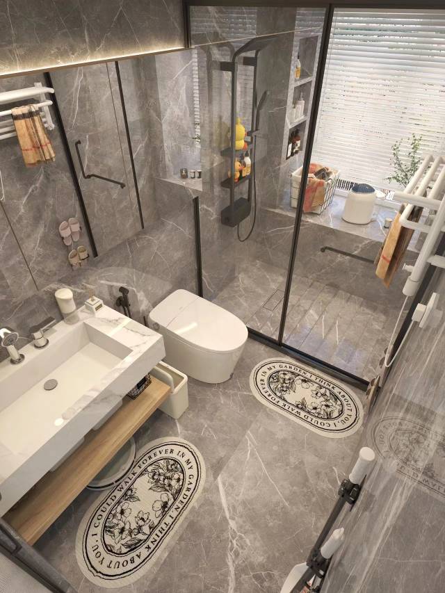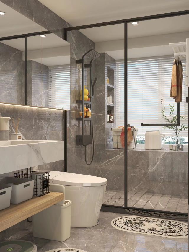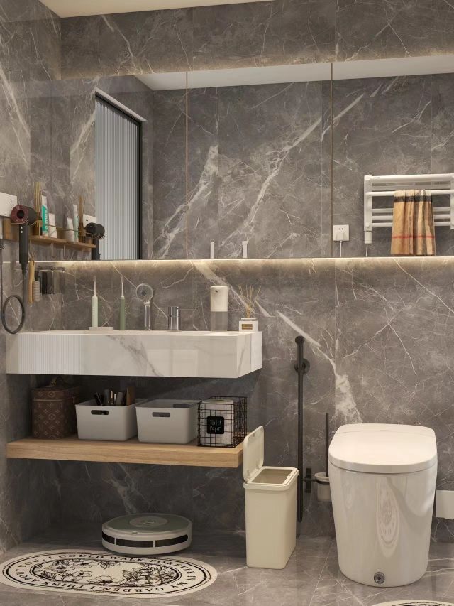 轻奢风浴室装修,大理石瓷砖增加质感~