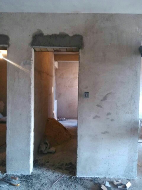 今天主要降门头,交房时门太高,现在要降下来,降到两米左右。