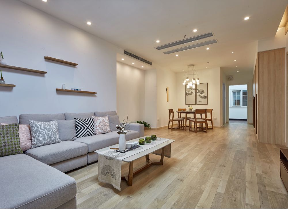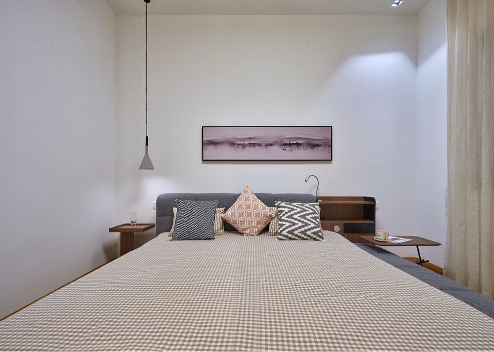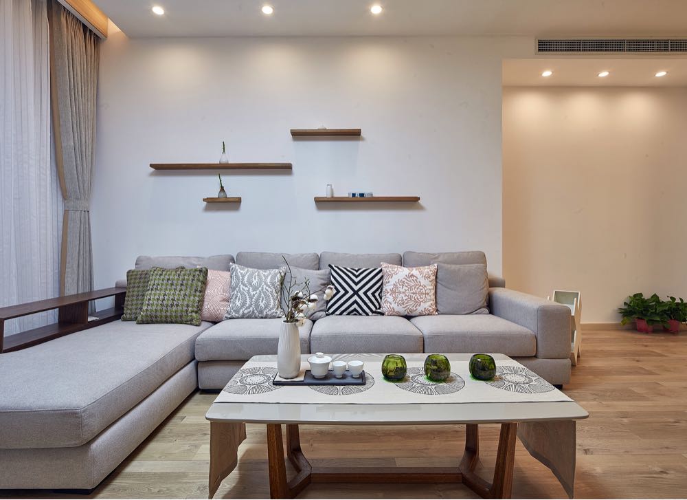 沙发背景墙 简单的置物架也能有意想不到的效果