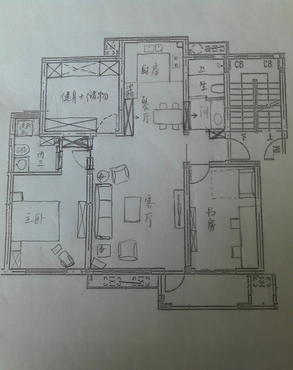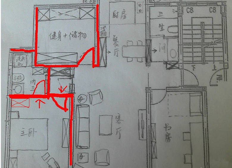 不会用CAD,不会用PS,自己手工画了一张布局图,大家来帮我提提意见撒。纯手工画,连尺子都没用。