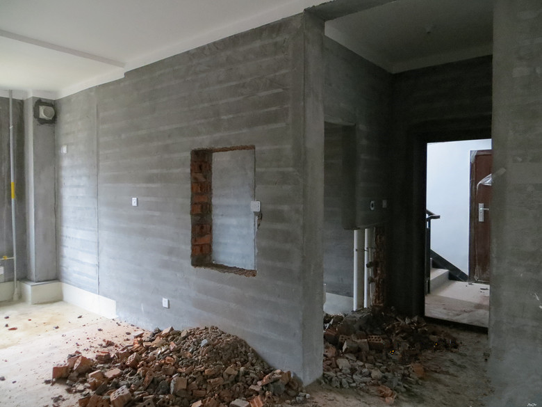 这个洞是留着做卫生间干区墙面上的储物柜的,敲的好板正啊,下面里个特写。
