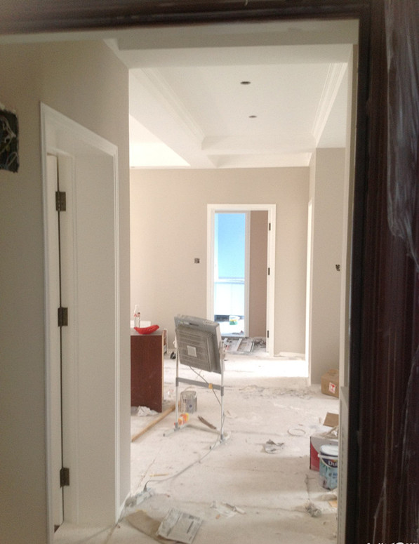 墙漆全部完工,当当当当。。。上图啦。内卫用墙漆和石膏板吊顶的,有么有比我家还大胆的,哇哈哈。