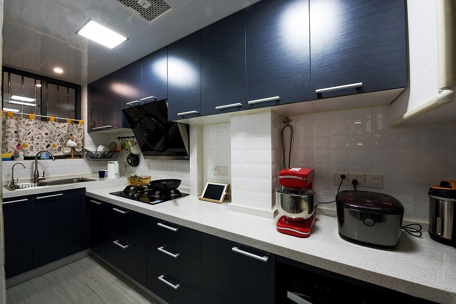 厨房,黑色搭配的厨房让整个空间更加有了层次感。