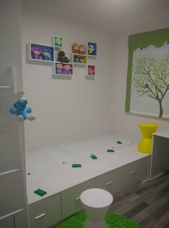 儿童房,未来宝宝的天地。 主卧和次卧都刷了奶咖色的,书房选了