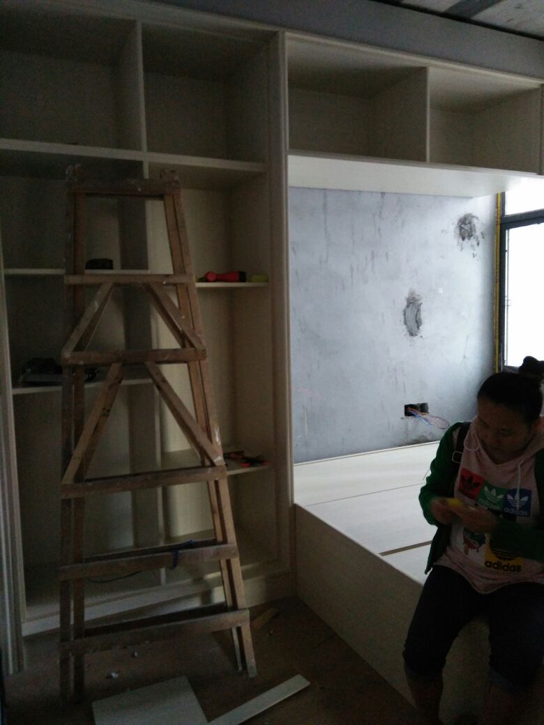 一个星期,木工师傅打出来的活,我的柜子挂的少,所以多打了格子