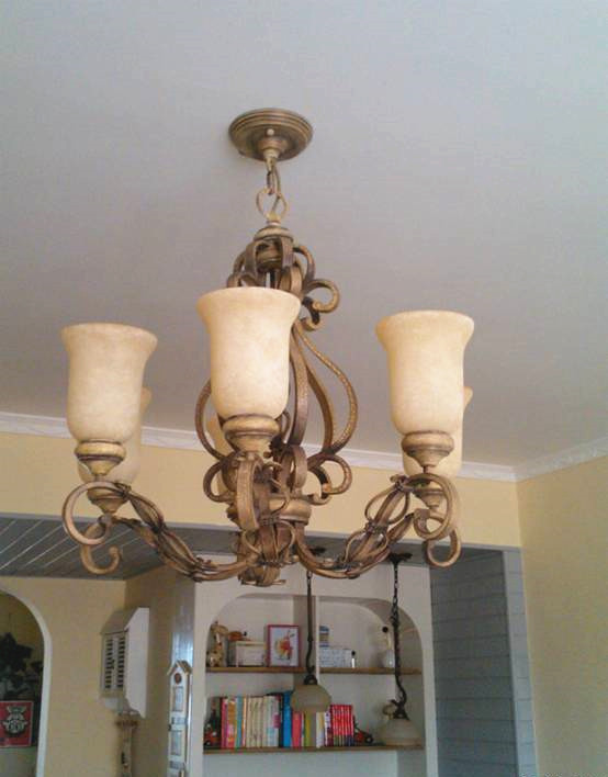 客厅的六头吊灯玻璃的材质,石头的感觉,这是安装的电工说的,算是实诚的评价吧!