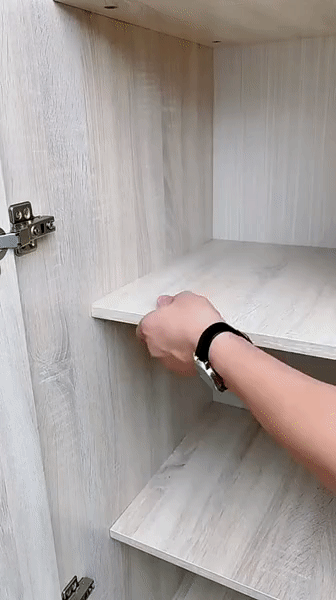 不想在柜子里面打孔装隔板,可以用这个隔板托,粘贴牢固承重非常...