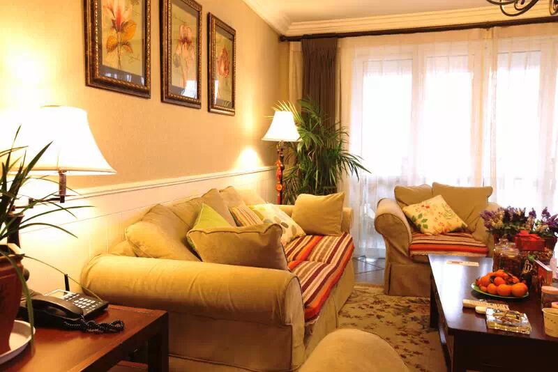 图我不多加描述了,客厅的沙发与地毯由于网购有色差,不幸与墙纸重色而至客厅整体色彩太单一,无奈下又去淘了沙发巾与靠枕以稍作弥补。这次已经让设计师后期再帮我做些色彩上的调整,期待~