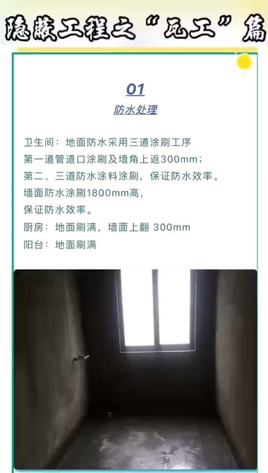 现有房屋在建造的时候也偶有考虑到防水层的处理,但在装修装饰中都可能对原有防水造成破坏,或者无法完全信任开发商的防水处理,那么在泥瓦工程中就可以对防水层进行重新处理,比如厨房、卫生间、浴室等都要做特别的防水处理,以免造成入住后的邻里纠纷,现有不少业主在泥瓦工程中遗漏掉防水或者不去重视,导致后来入住后因为水淹下层住户造成赔偿损失的很多,所以大家应该非常重视这一环节。