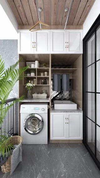 家里没独立的书房,又刚好需要一个办公加班的空间,那么打通后的阳台,就可以摆上书桌作为办公区使用。