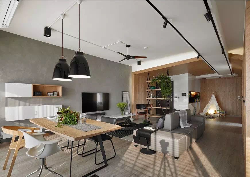 导轨灯就是在固定横向区域安装轨道配以多个可变换光源角度的筒灯或者固定位置安装可变光照角度的筒灯。相对于明装筒灯,导轨灯更加突出筒灯的装饰作用,将其作为设计的一环。