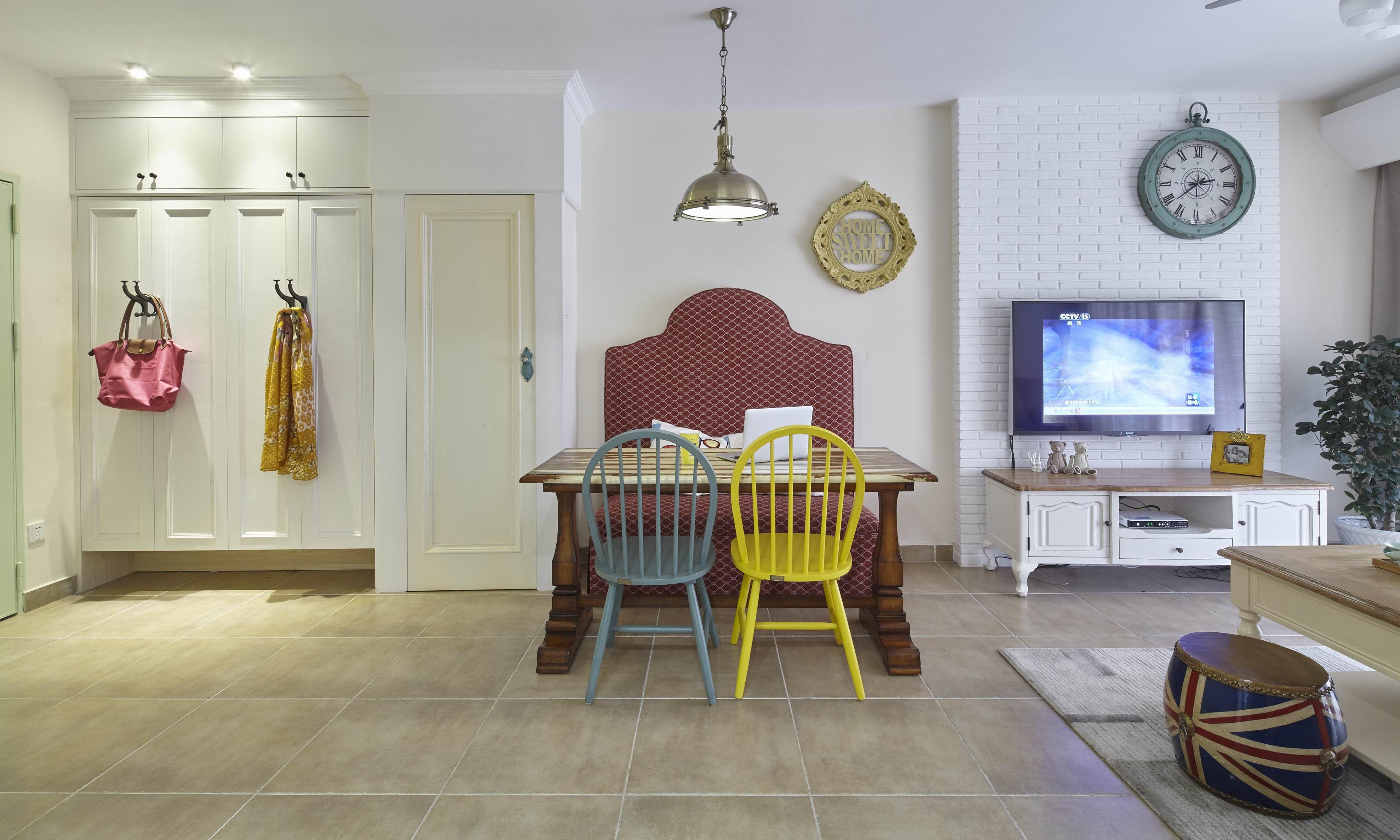 一字型的飘窗,相对来说窗帘的安装比较自由,基本窗帘布帘靠窗安装就能实现很好的遮光效果,而且窗帘对家具布置摆设也不会有什么影响。