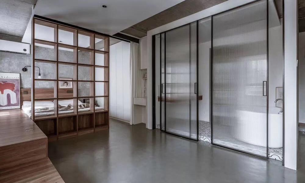 折叠门的材质和样式比较广泛,可以根据个人爱好需求选择。一般的折叠门有地轨、吊轨、双轨三种设计,如果顾忌轨道的卫生问题,完全可以选择不要地轨。