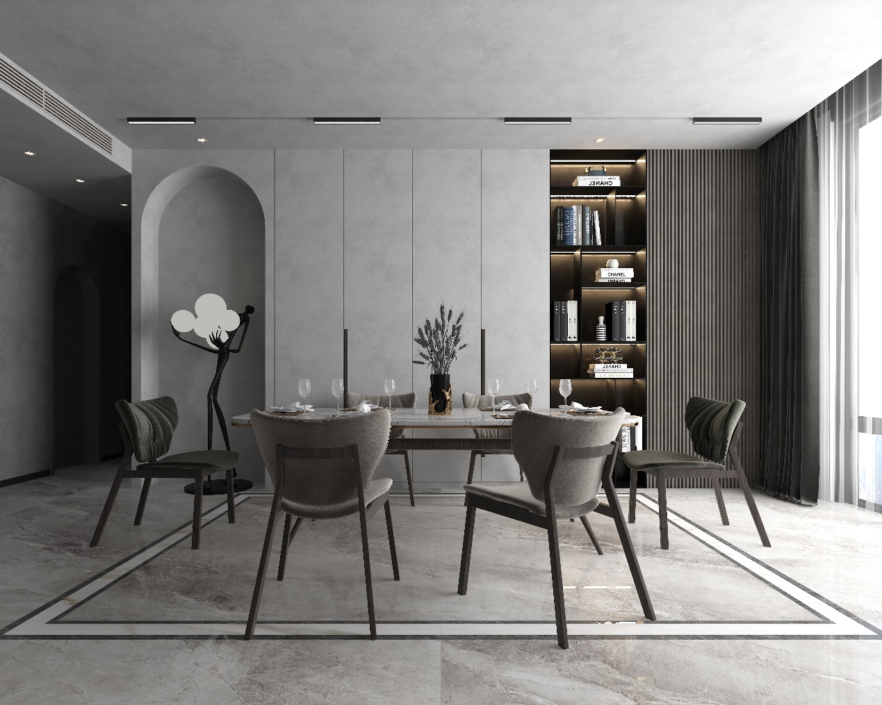 客餐厅一般具有很强的链接性,在瓷砖选择过程中最好协同考虑,不易选择精致的小瓷砖,尺寸较大的瓷砖更凸显空间延伸性。600*600或800*800的尺寸是比较好的选择。