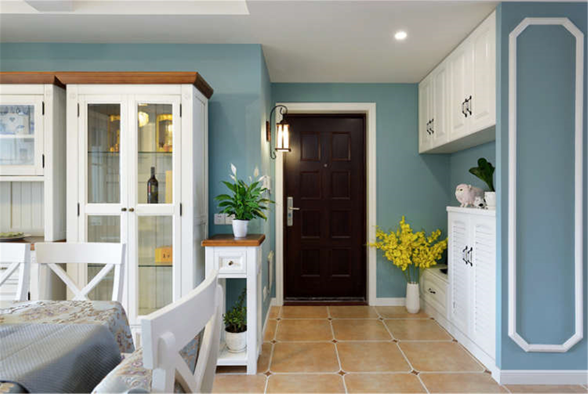 如果你家玄关面积较大,那么也可以合理划分区域,设计个衣帽间。