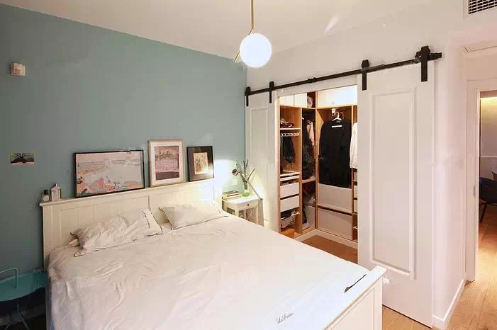 不想牺牲空间的通透感,可以把衣帽间的门改成玻璃或格栅,让卧室看起来更敞亮。