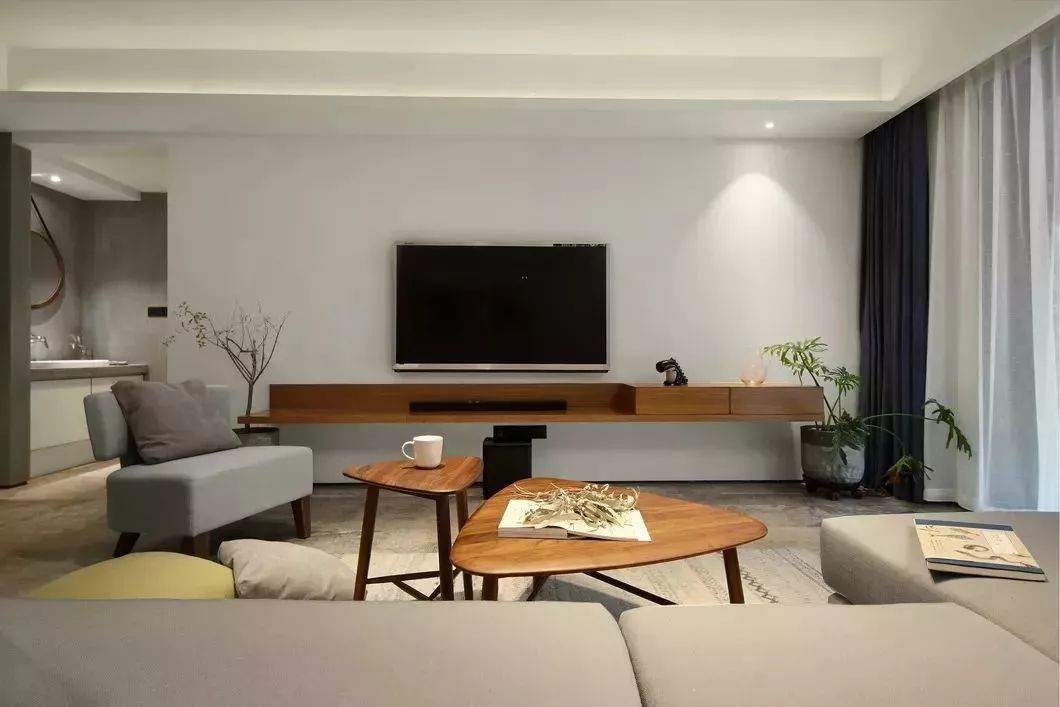 简约中性的色调搭配,干净利落的背景墙及家具,暖白色调的灯光,让现代的居家温馨时尚感浮然而生。