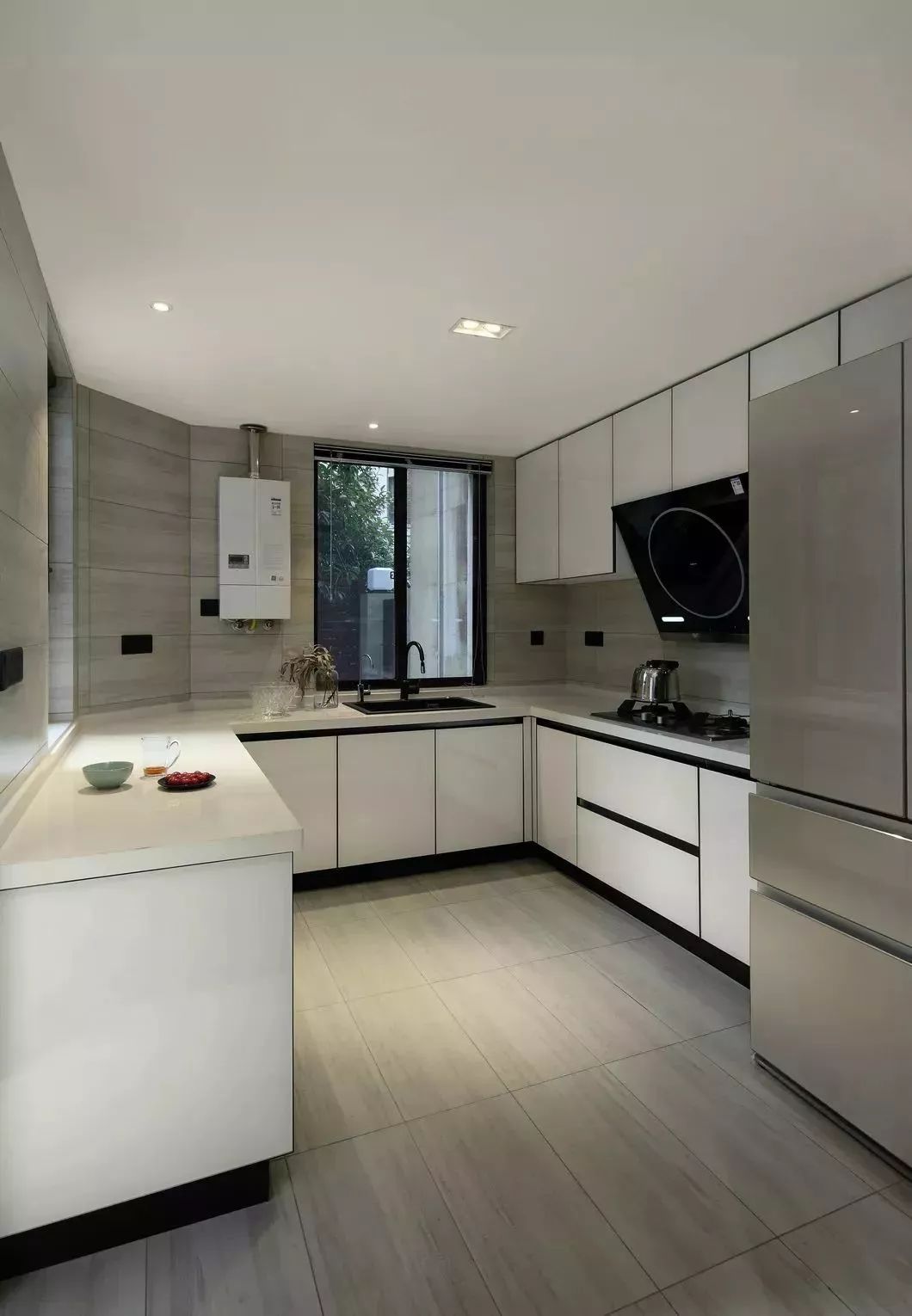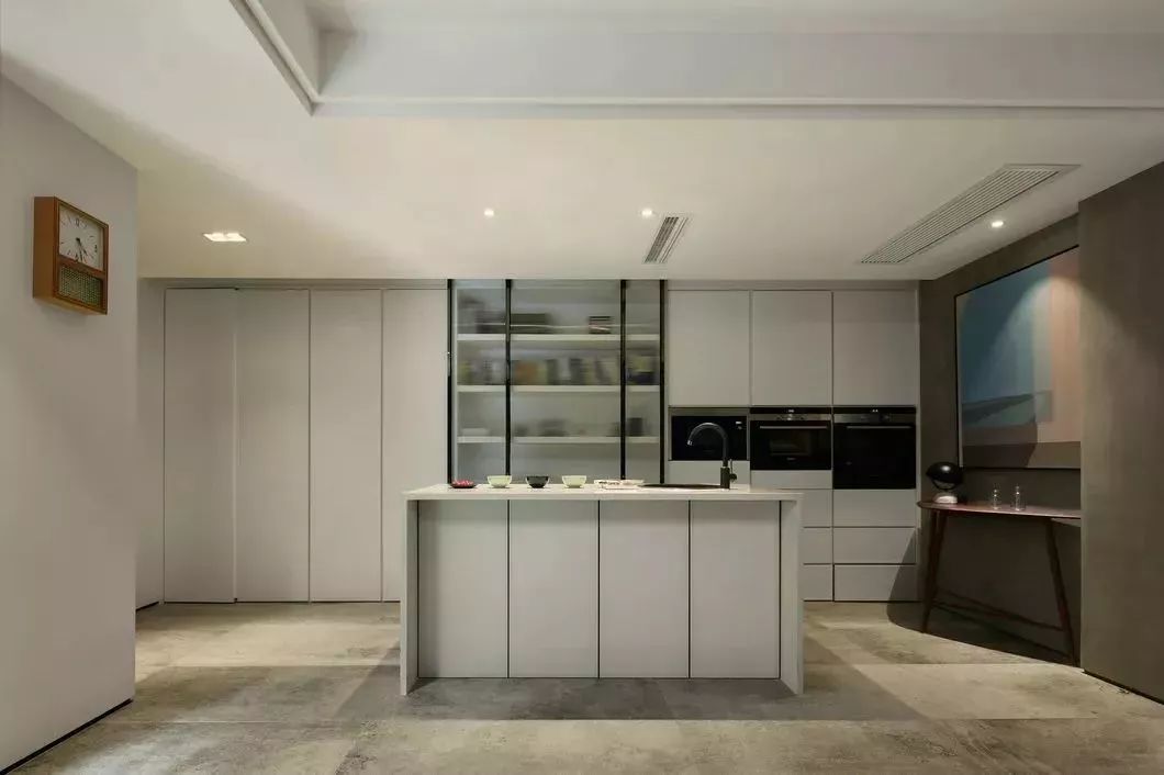开放式的厨房,很符合业主骨子里的浪漫情怀,你在客厅玩闹,我在厨房准备着一家人的美味晚餐,看不见的爱意在整个空间飘荡。