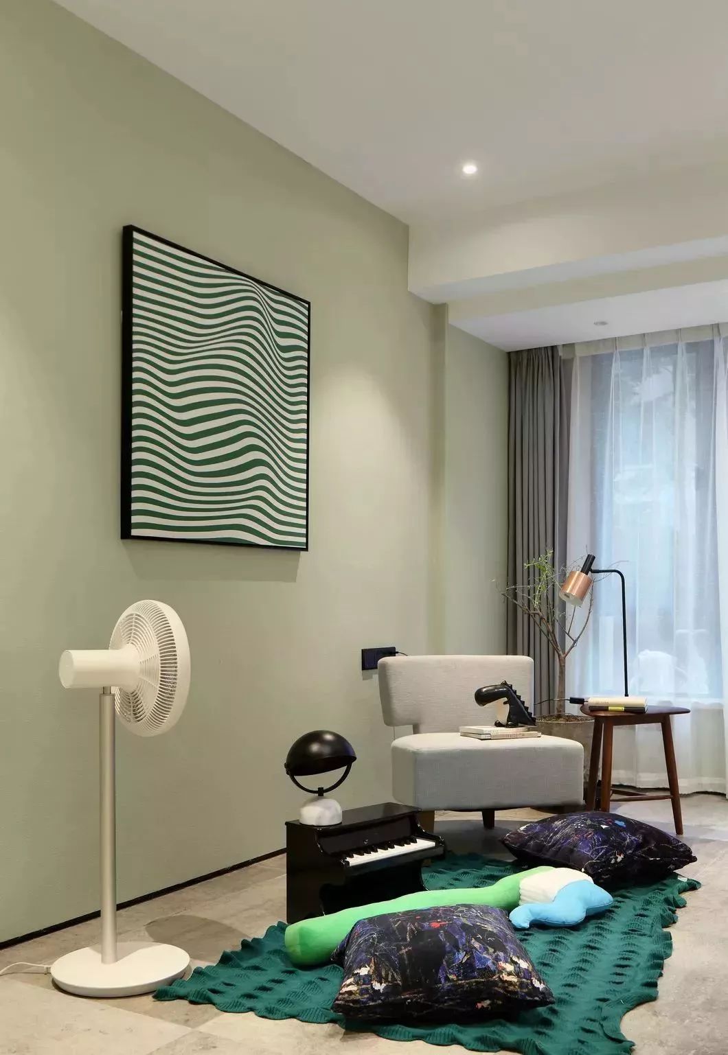 黑色小巧的儿童钢琴,绿色的地毯,白色的落地风扇,可爱的玩偶,都为这小小的休闲区增添了一丝趣味性,使得娱乐性十足。为孩子打造一个充满童趣的小天地!