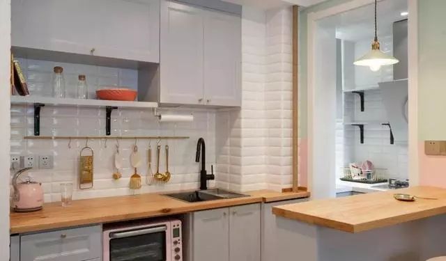 当然了,用木质台面的家庭也是有,由实木切割而成的台面,颜值自然没话说,但是造价偏高,然而厨房水油较多,必须做好防水防油抗菌处理,否则用个几年就发霉开裂要换掉。