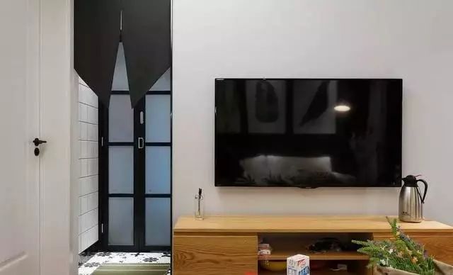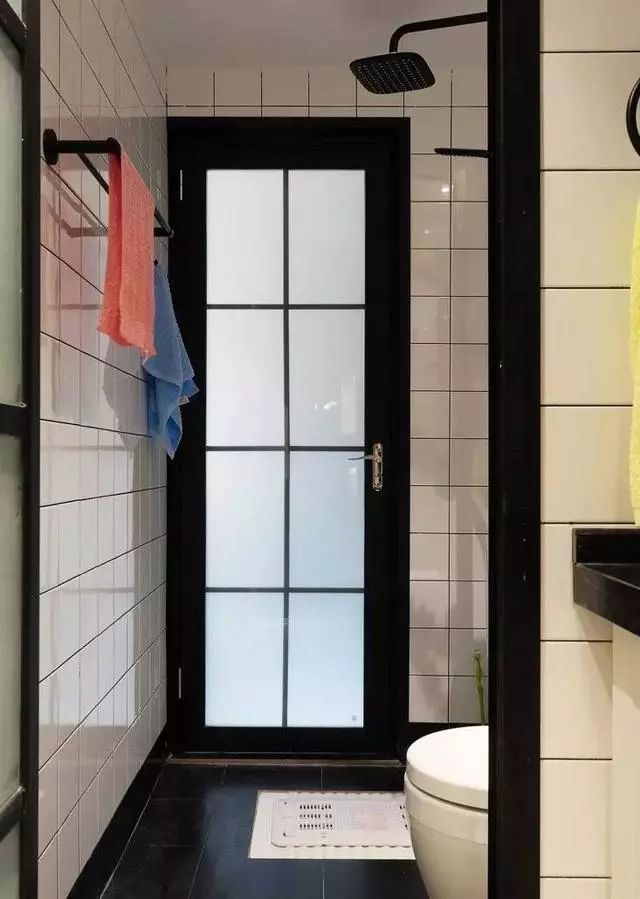 回来看客厅通往的卫浴间,黑白小砖块延续了入口处的风格,显现北欧设计感。