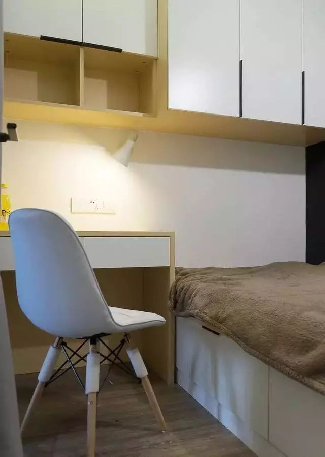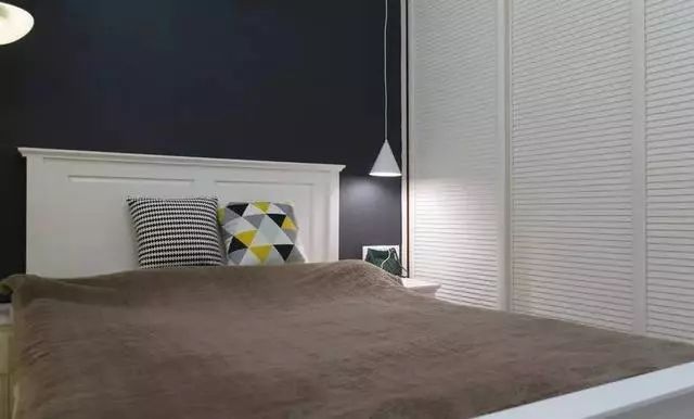 简约设计感的卧室,当然不能少得了百叶推拉柜门下的衣橱。