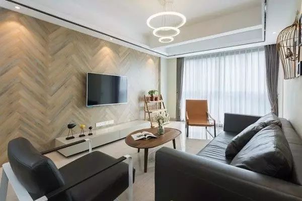 ✪客厅电视背景墙一下子就吸引了小编的目光,它采用的是鱼骨拼的方式,有一种贵族气质,比其它的装饰更独特、有质感。