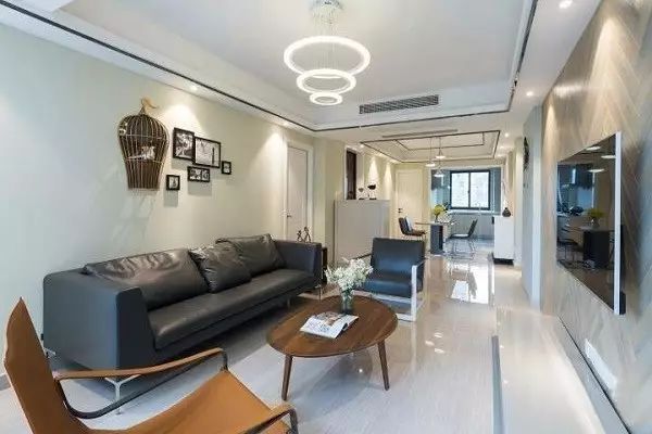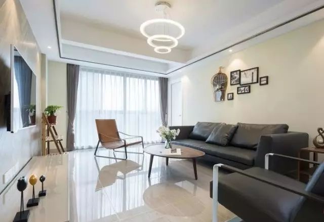 ✪富有光泽的瓷砖地面让整个空间看起来更透亮了,即便配上了黑色沙发,也不会显得很是暗沉。