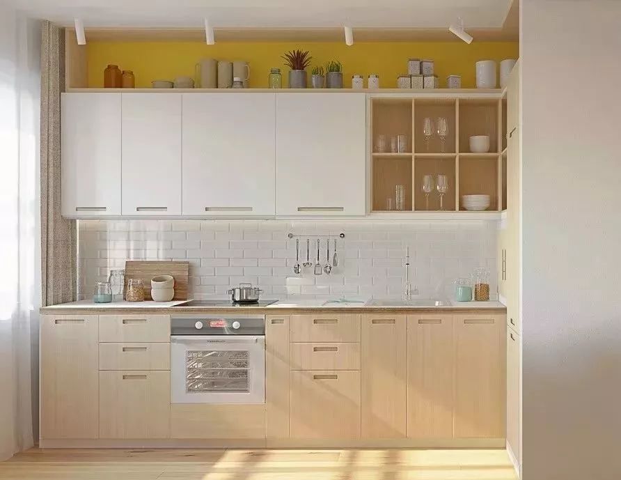 可以在小户型的厨房中适当的安装玻璃,因为玻璃可以使整个厨房的面积拉长,还可以改善小户型厨房的压抑感,特别是吊柜的门,可以选择磨砂玻璃材质,这样才能让厨房更具通透感。
