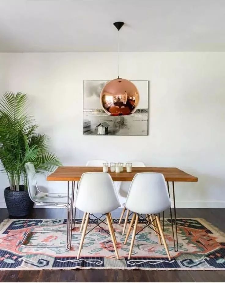家具和布艺软装进行对比也是个好办法,比如室内色调以浅色为主,抱枕、窗帘、地毯等布艺软装的颜色接近,而沙发和椅子则颜色较鲜明,这样对比层次感强烈。再通过艺术壁画、特色吊灯等装饰品,提升整个空间的艺术品味。