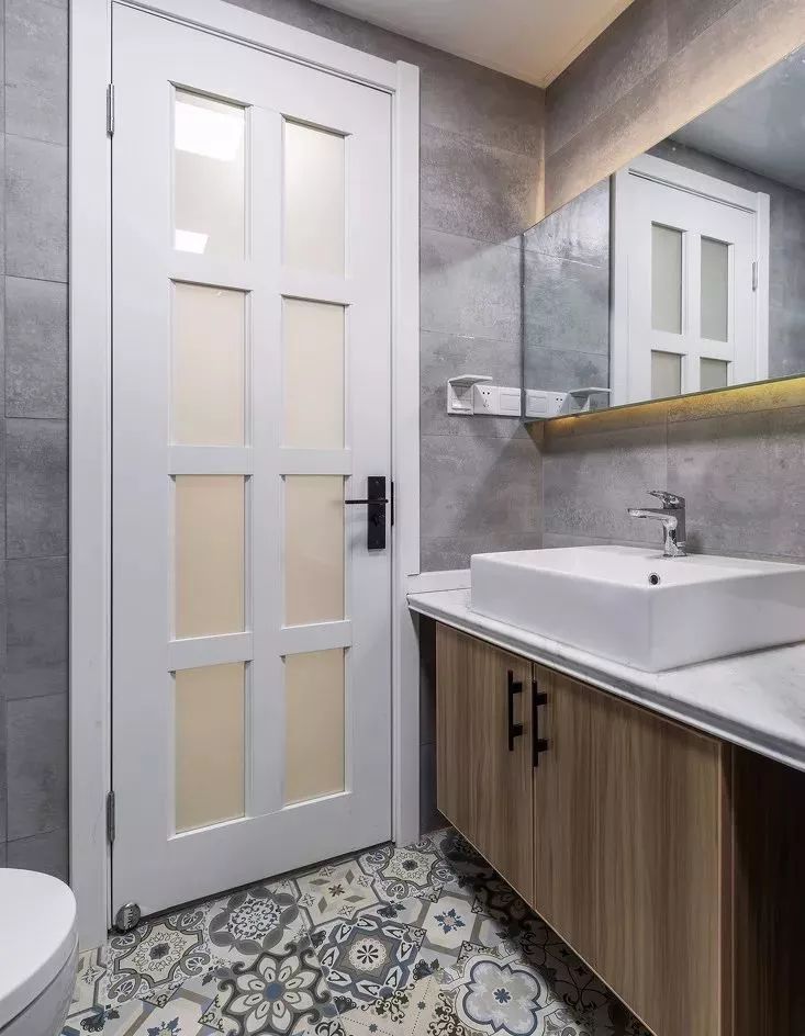卫生间干湿分离,干区地面铺设小花砖迎合北欧风格的小元素。