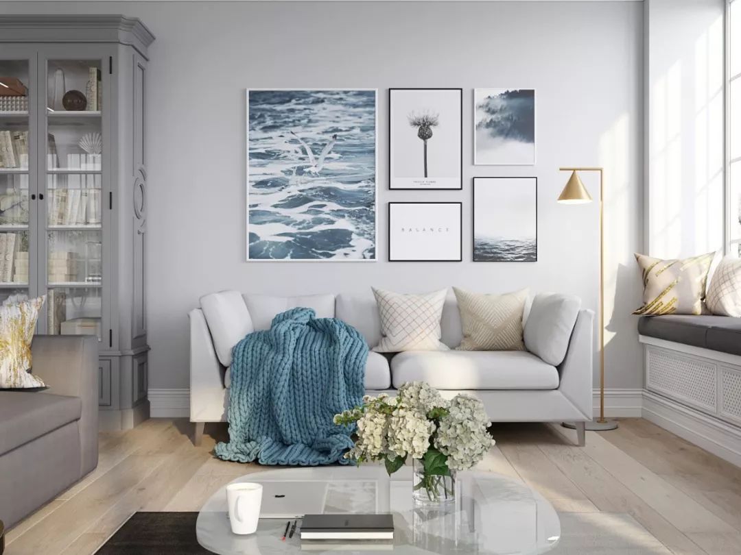 画框是影响画面美感的一个重要元素,多幅挂画最好选择统一的画框,这样才不会让人产生凌乱的感觉。画框的颜色最好选择无色系,如黑、白、金、银等色调,也可以搭配原木材质,但最好选择细框,这样可以凸显出挂画的精致。