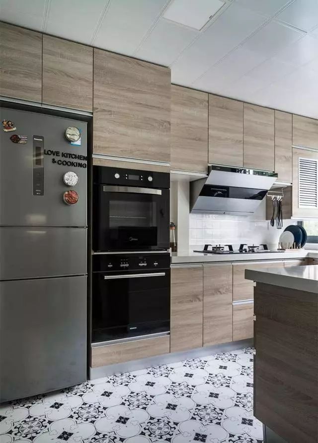 黑白灰的地砖点亮了整个厨房~