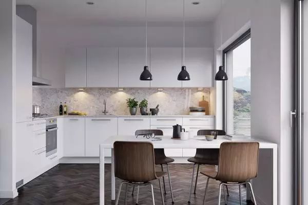 当然了,如果喜欢比较素雅一些的,那黑白灰打造出的餐厅也是不错的选择呢~