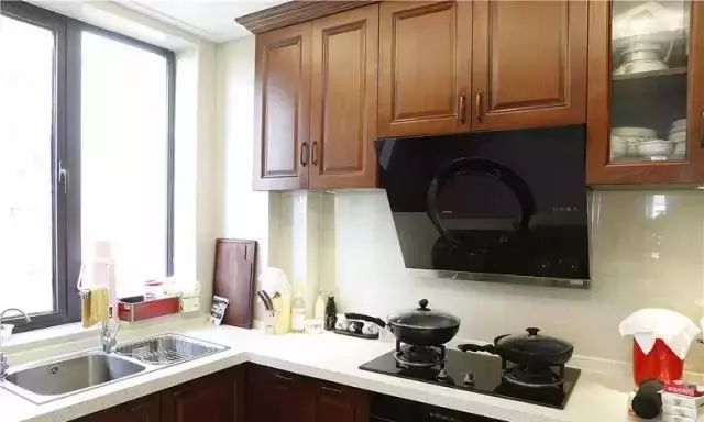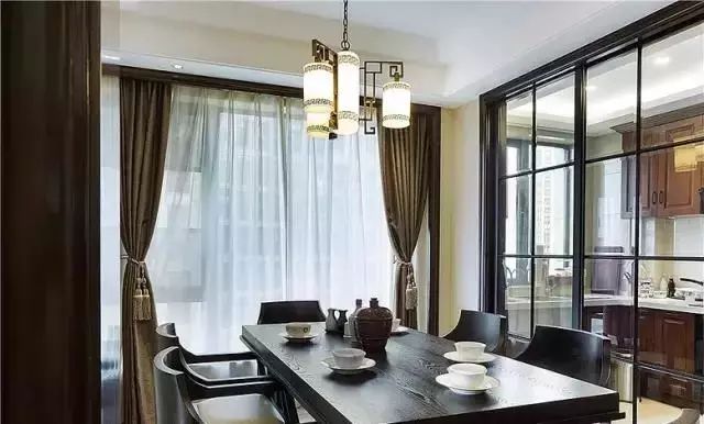 餐厅与厨房用的是黑色玻璃推拉门进行隔断,时尚又方便,还很实用!